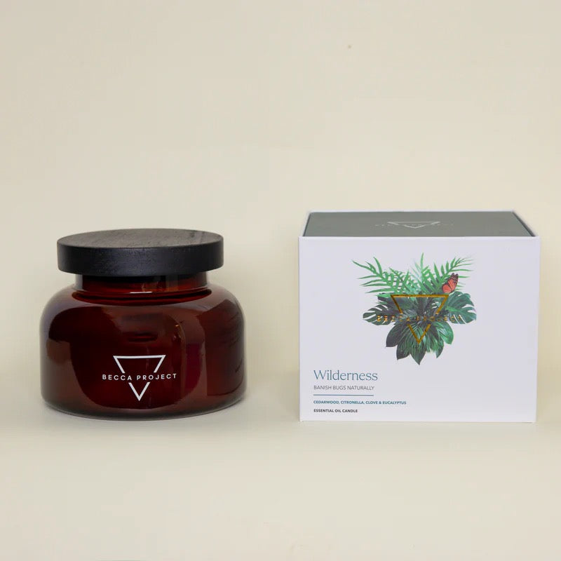 Our large Wilderness candle is a fresh, woody blend of CEDARWOOD, CITRONELLA, CLOVE, EUCALYPTUS. It’s the perfect way to enjoy the great outdoors without being eaten alive by mosquitos.