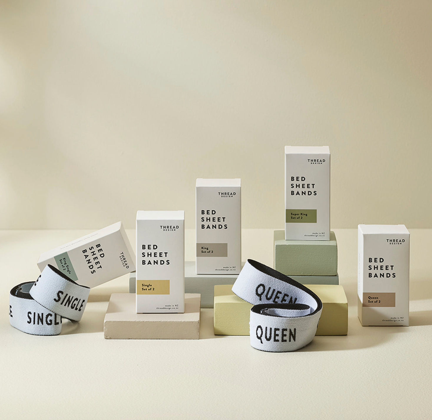 Organise your linen cupboard effortlessly with the clever Bed Sheet Bands by Thread Design. No more unfolding and refolding just to figure out the sizes, these handy elastic bands wrap around your folded sheets and bedding, clearly labelling the size as well as keeping your sets tidy and organised. These bands simplify finding the right bedding in no time.
