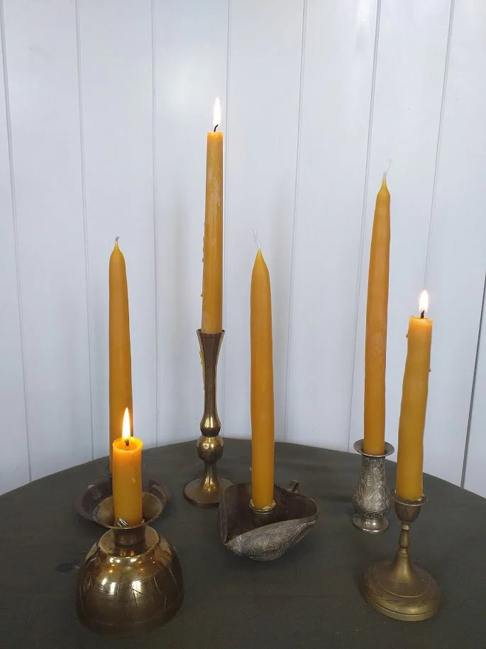 Beckah Hand Dipped Tapers are made from 100% locally sourced beeswax. Hand Dipped in small batches. Tapers can vary slightly in size, but are roughly 20cm in height and will fit most candlestick holders with the end of the stick roughly 2cm across.