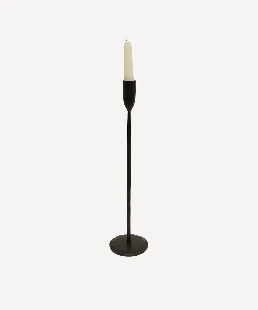 Hand forged, cast iron candlestick in matte black. Available in three sizes.
