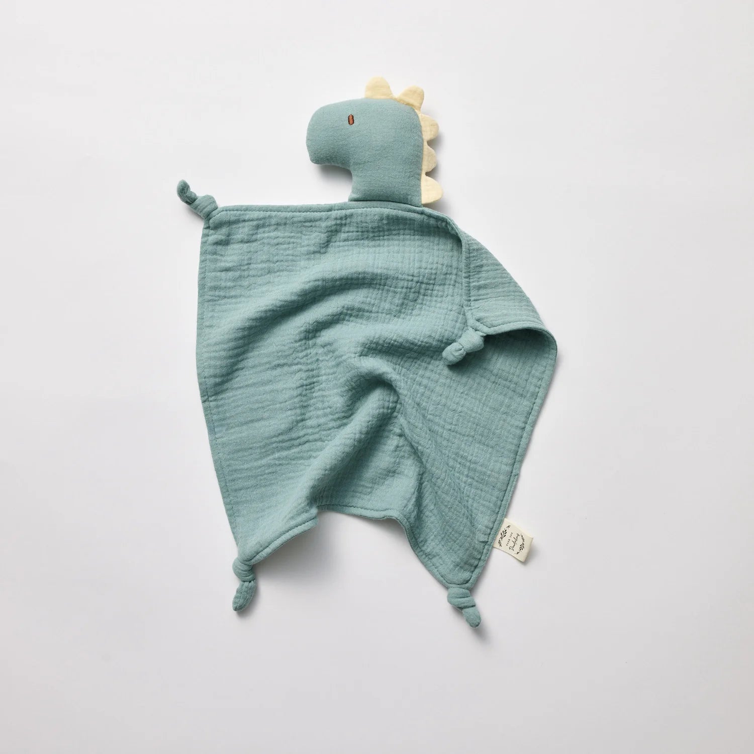 The sweetest Dinosaur security blanket made from 4 layers of super soft GOTS certified organic muslin.