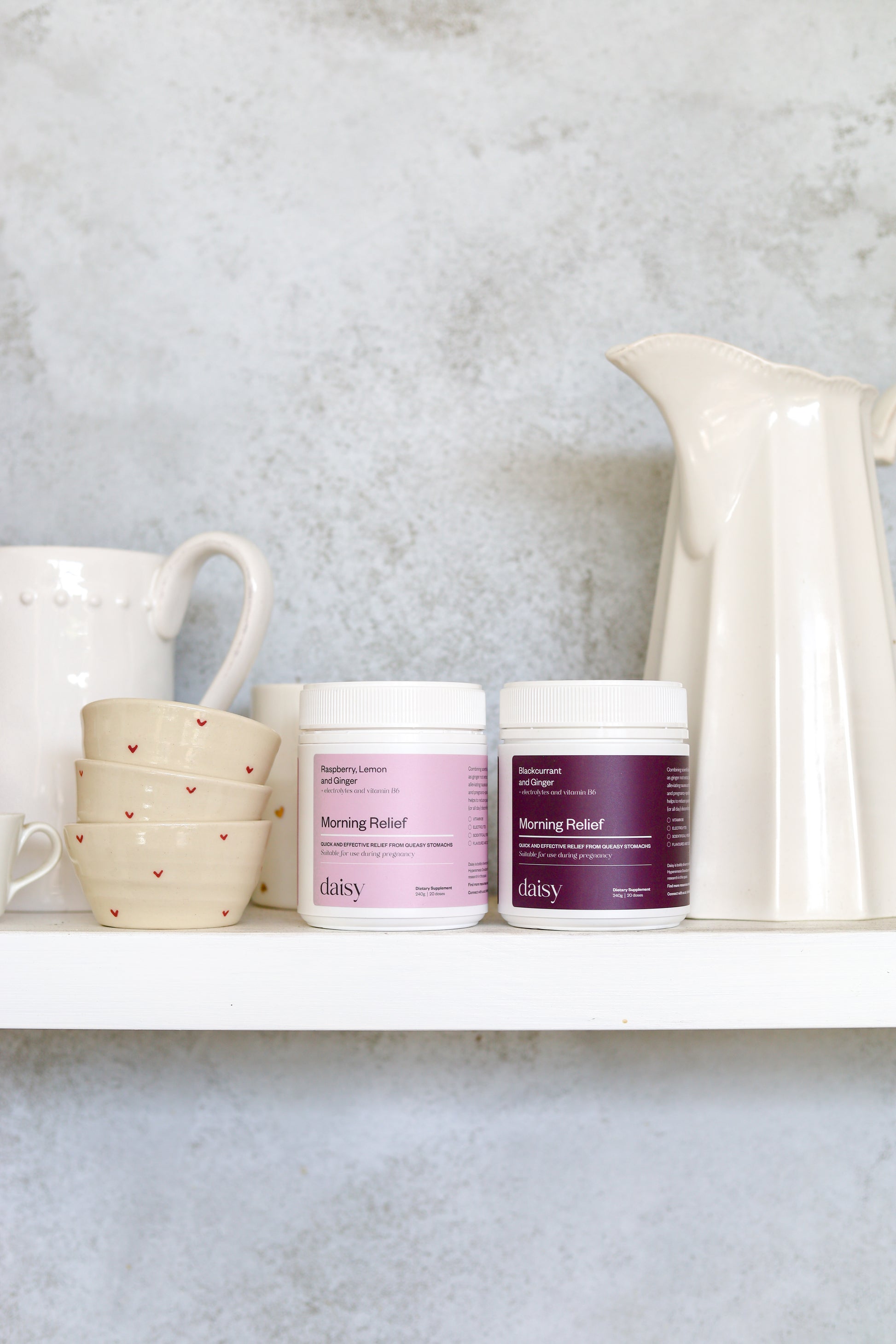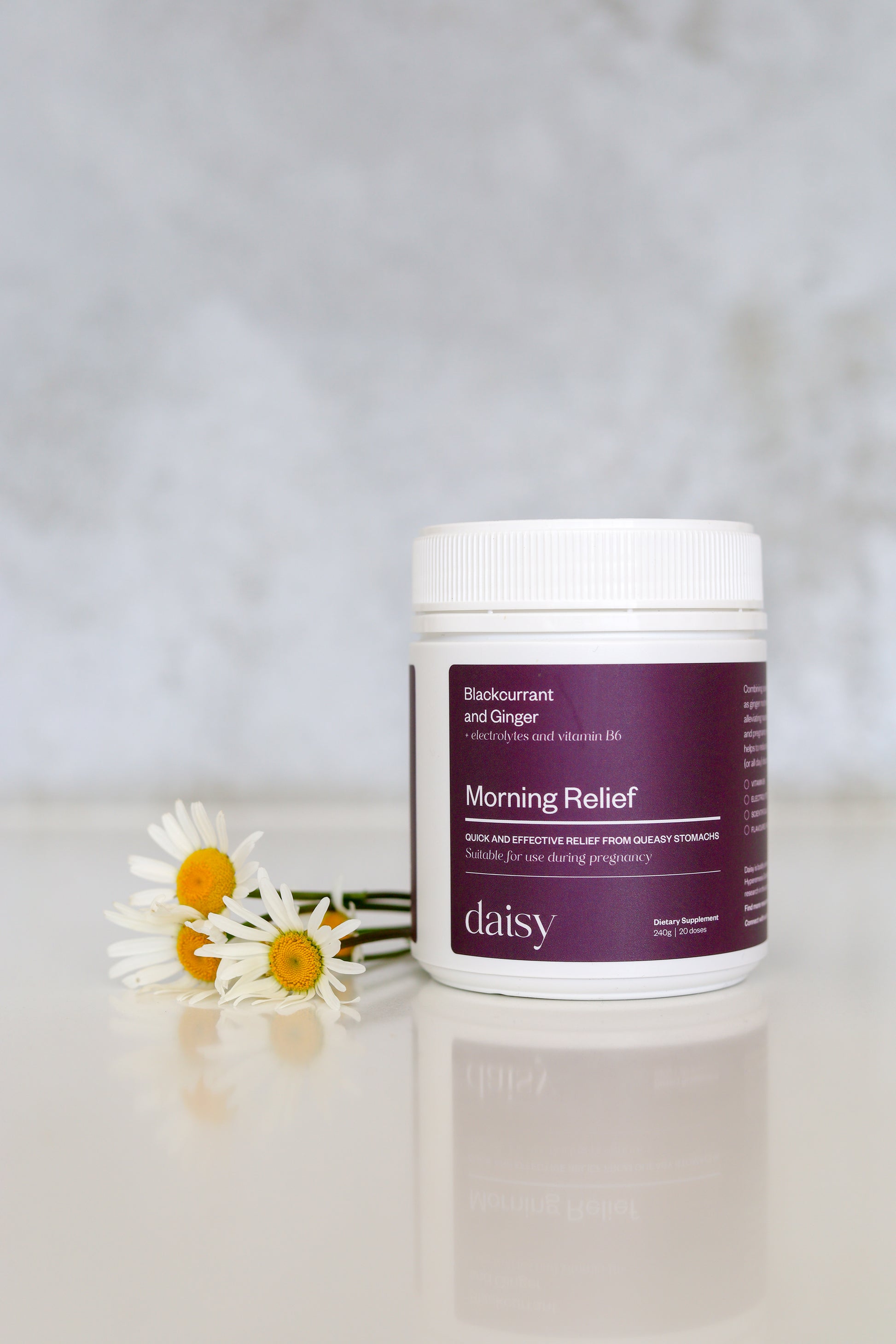 Combining scientifically researched ingredients such as gingerol extract, vitamin B6 and electrolytes, Daisy’s Morning Relief product supports you through morning sickness, vomiting, nausea and dehydration in pregnancy.