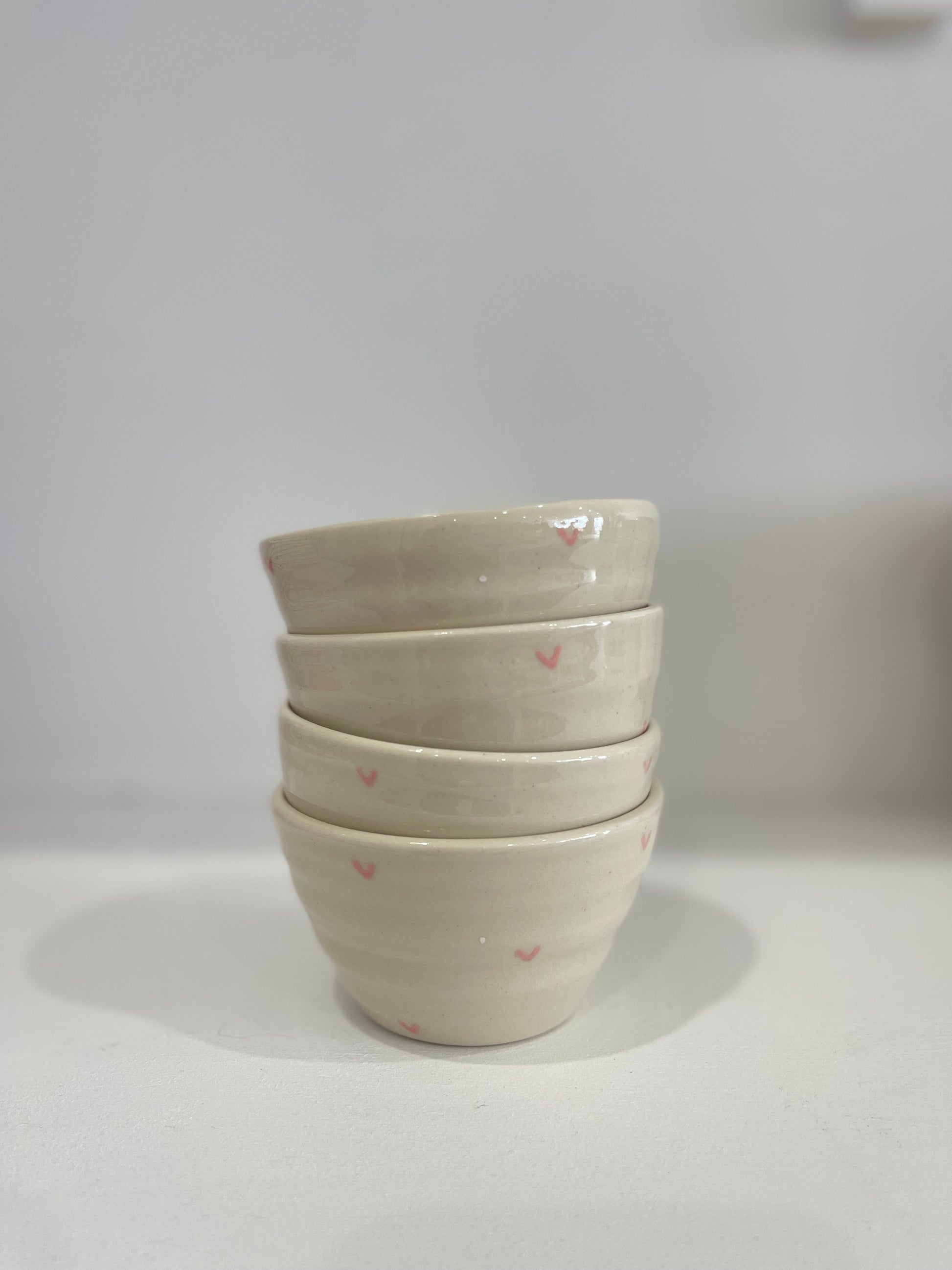 Each bowl is handmade on a pottery wheel and is completely unique. The shape and size may vary slightly. The picture is a reference only. Each bowl is approx 6.5cm tall and 9.5cm wide.