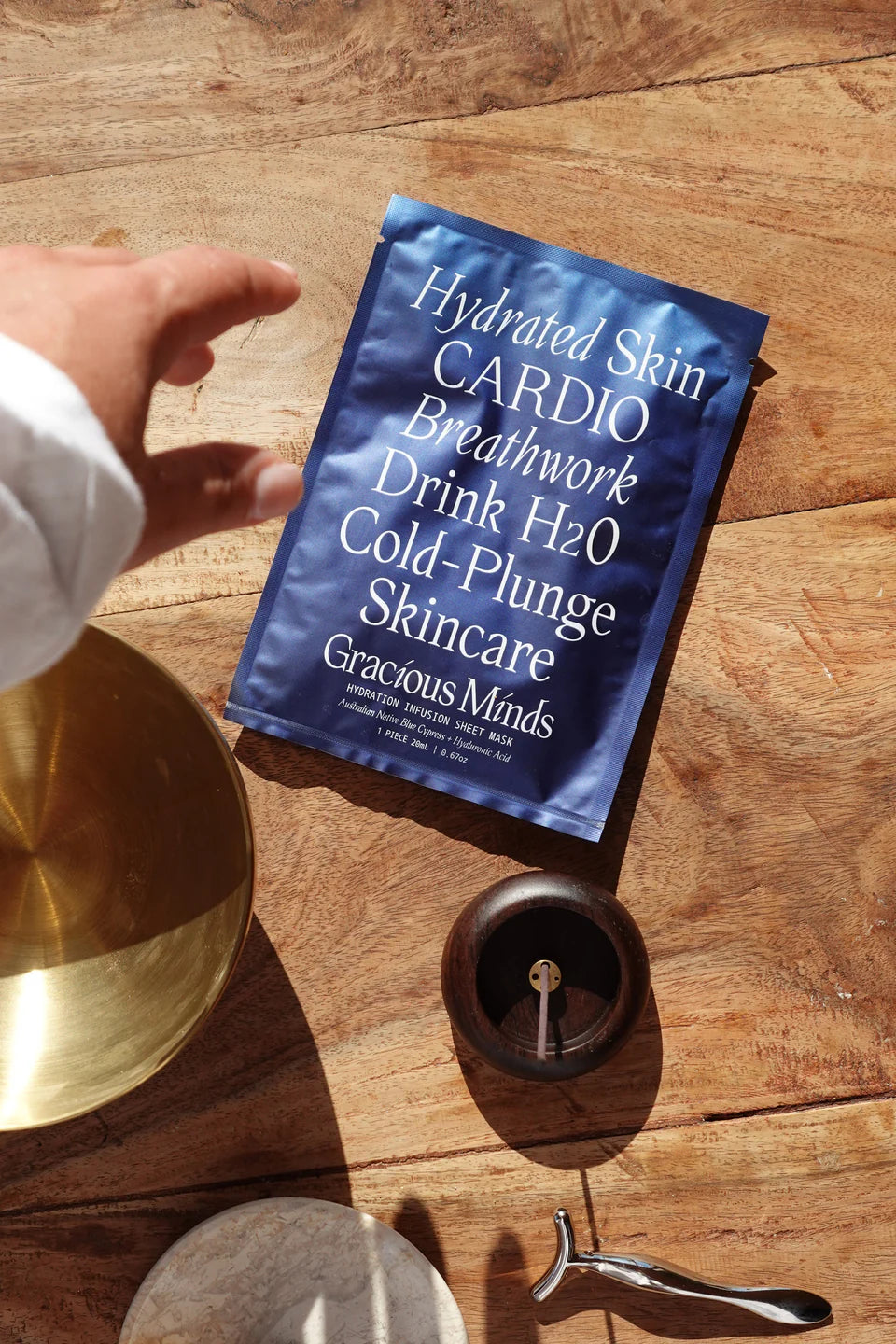 Whether you're winding down with mindful breathwork, working up a sweat with at-home cardio, or simply taking a moment for stillness, this mask replenishes moisture, soothes irritation, and enhances your natural glow—leaving your skin refreshed, smooth and plumped. Your skin thrives when you do. Pair this mask with movement or breathwork to unlock hydration that radiates from the inside out. Infused with Australian Native Blue cypress and hyaluronic acid, this serum drenched mask penetrates deeply to hydrate and replenish your skin while increasing your skin's natural elasticity.