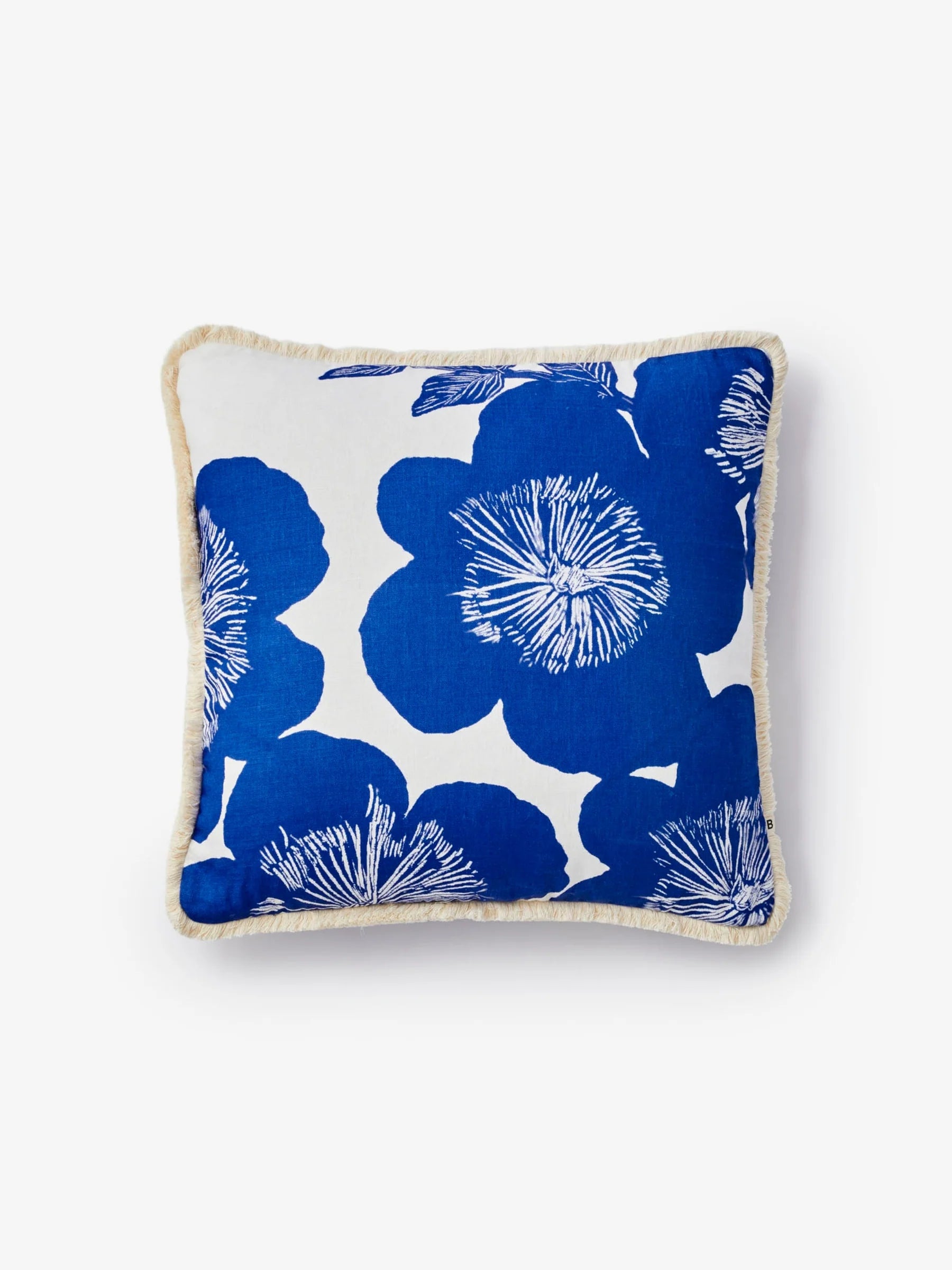 This blue linen cushion showcases the bold floral forms of our Jardin print, inspired by the sculptural beauty of anemones. A rhythmic, statement piece that adds quiet drama.