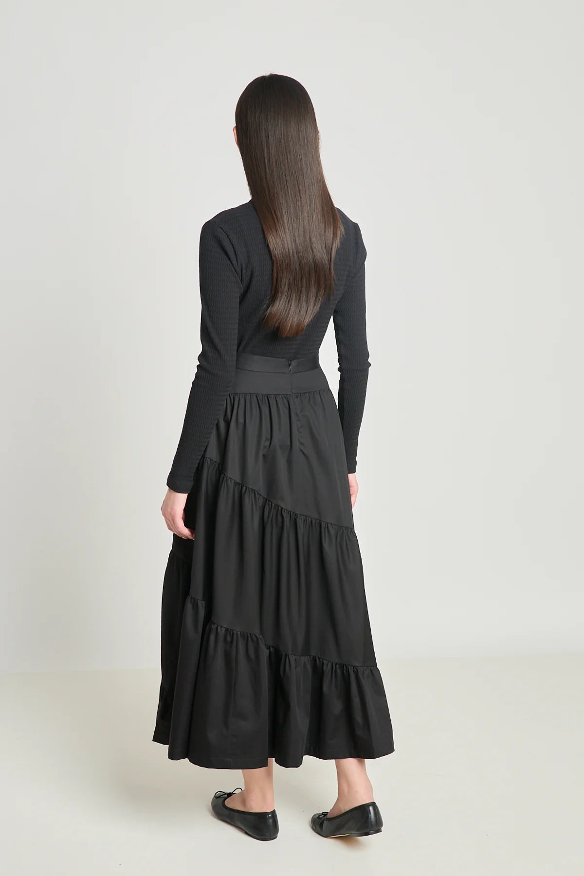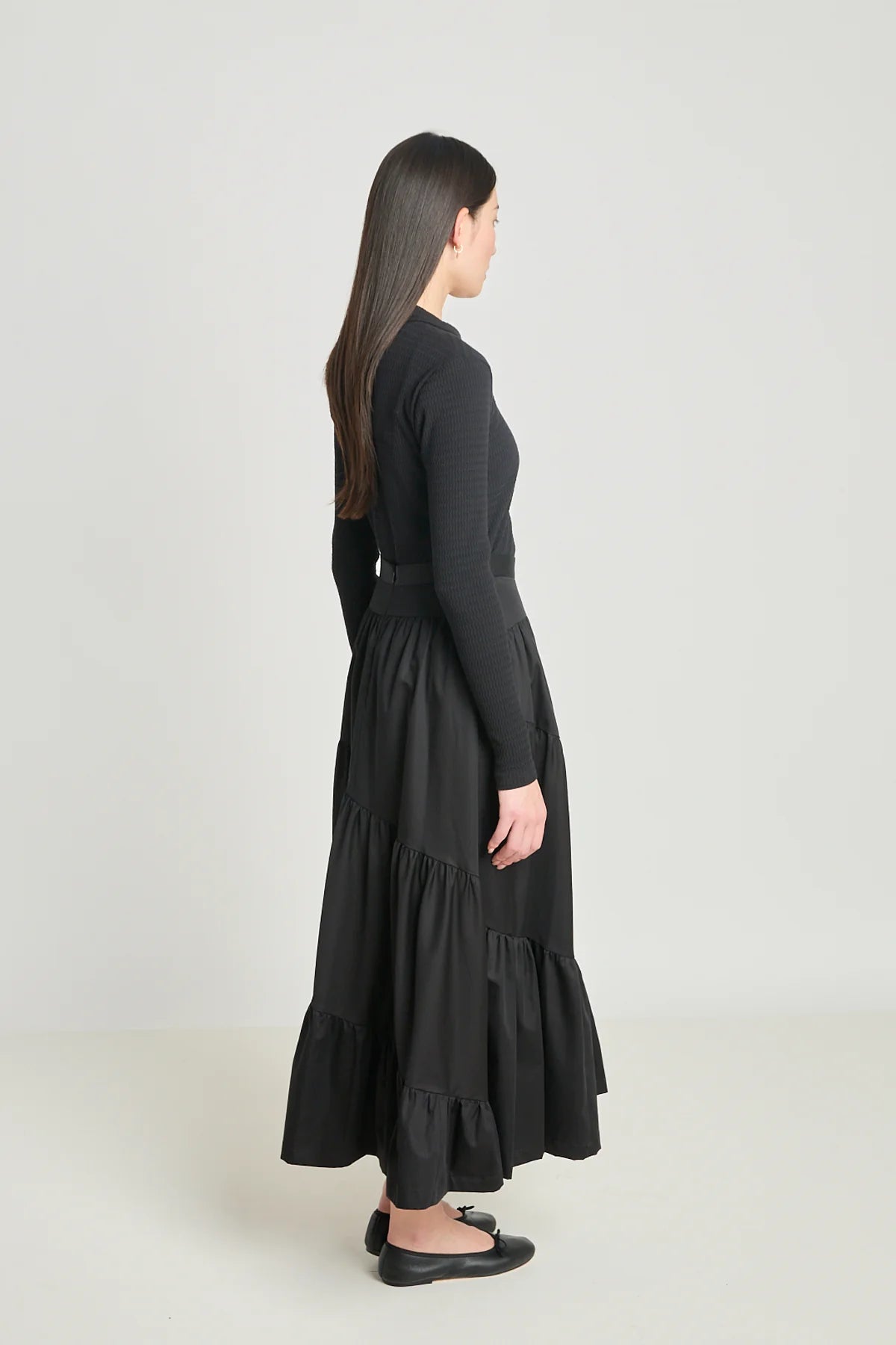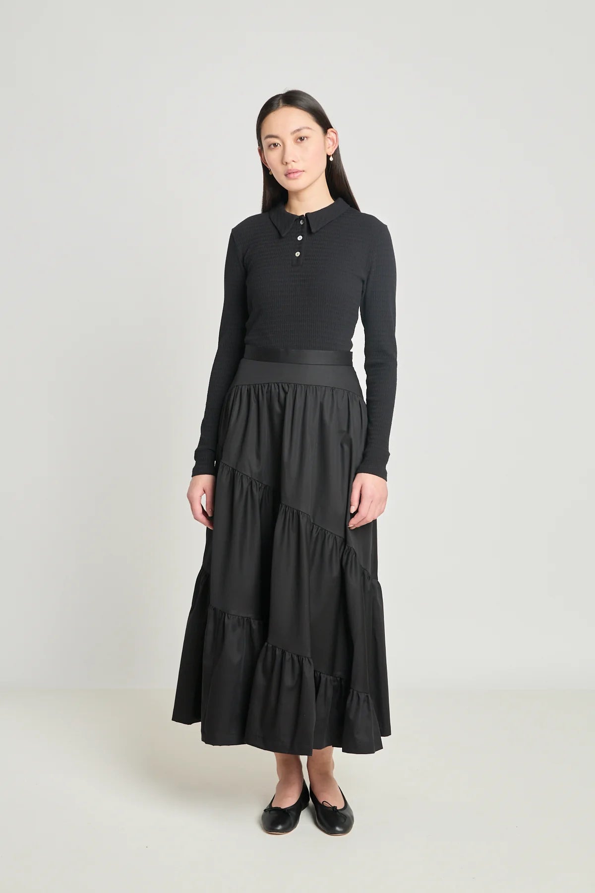 A new wardrobe classic in our favourite cotton sateen: the Miracle whip skirt has a high waist, multiple gathered asymmetric panels and a bias-cut middle skirt panel.