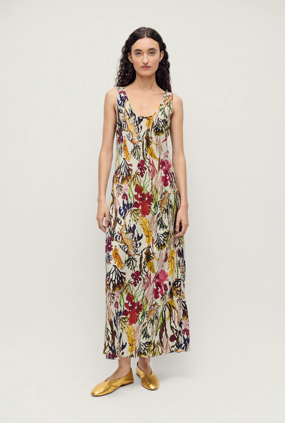 Silk Laundry Scoop Neck Dress, made from 100% silk. Cut on the bias, sleeveless with a scoop neckline.