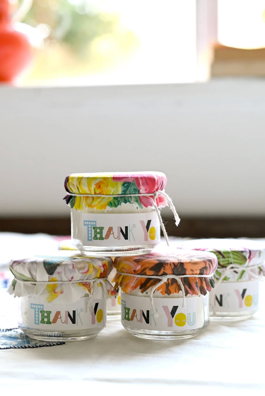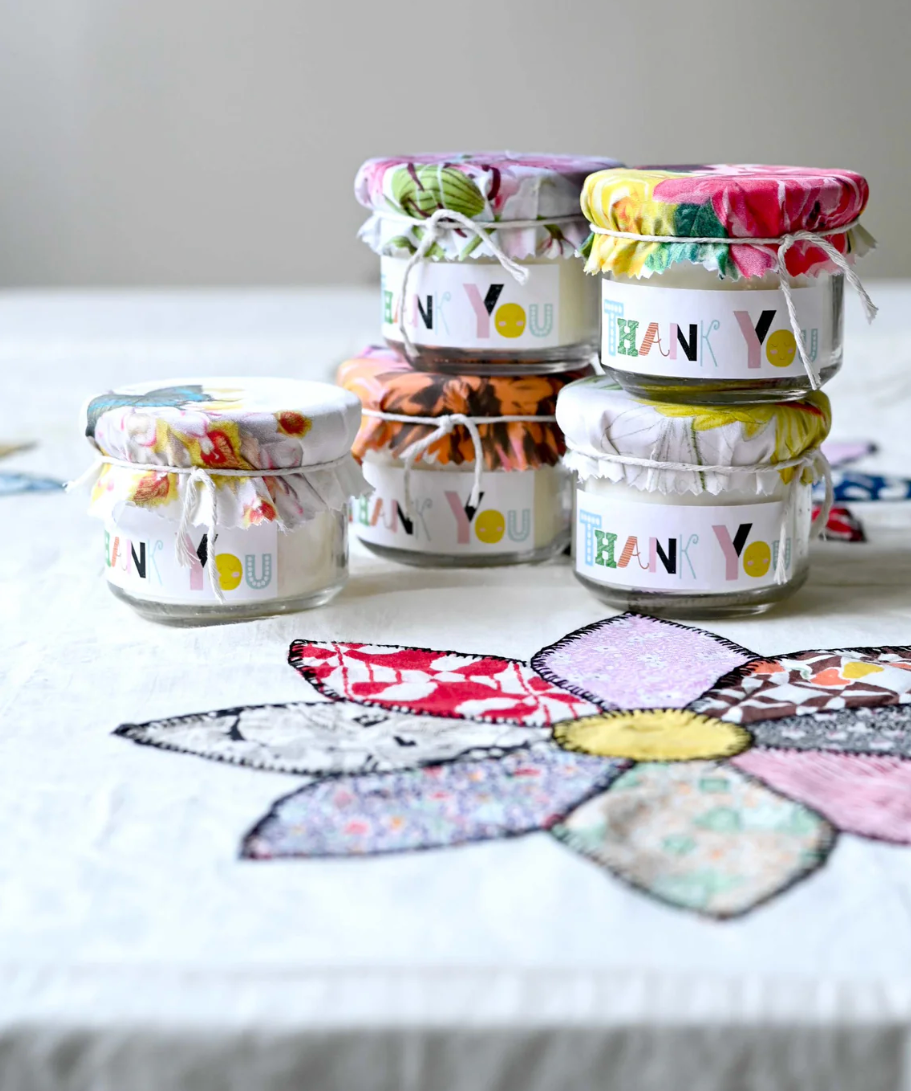 Fabric off cuts have been used to decorate the lid, reducing waste & making use of excess fabrics.