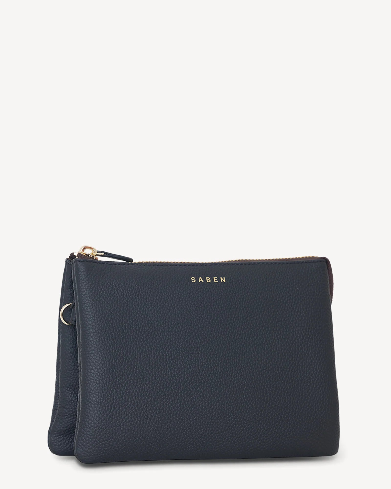 Details: Detachable and adjustable long leather strap to be worn over the shoulder or across the body; six drop card slots; gold plated hardware; interior secure zip pocket; outer zip fastening.